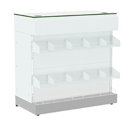 Alinha conforto para o usuário a uma exposição eficiente de produtos, visando a melhor experiência para cliente e vendedor, desenvolvido para resistir aos mais variados cenários, acompanha em sua estrutural frontal 2 cestos com 4 divisores cada e 1 anteparo na base. Possui 3 bandejas de aço na parte interna.