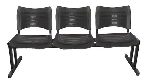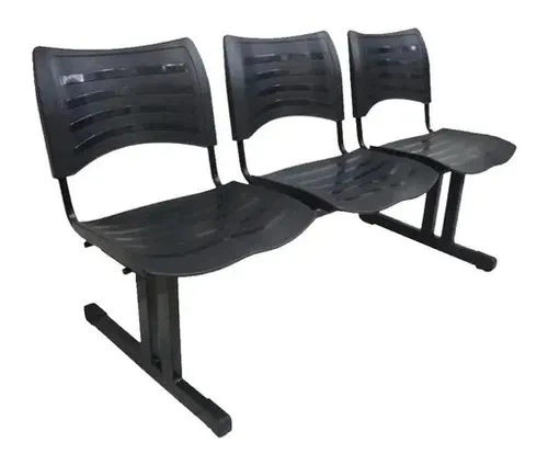 Cadeira Longarina Iso 3 Lugares em Polipropileno Preto - 1950