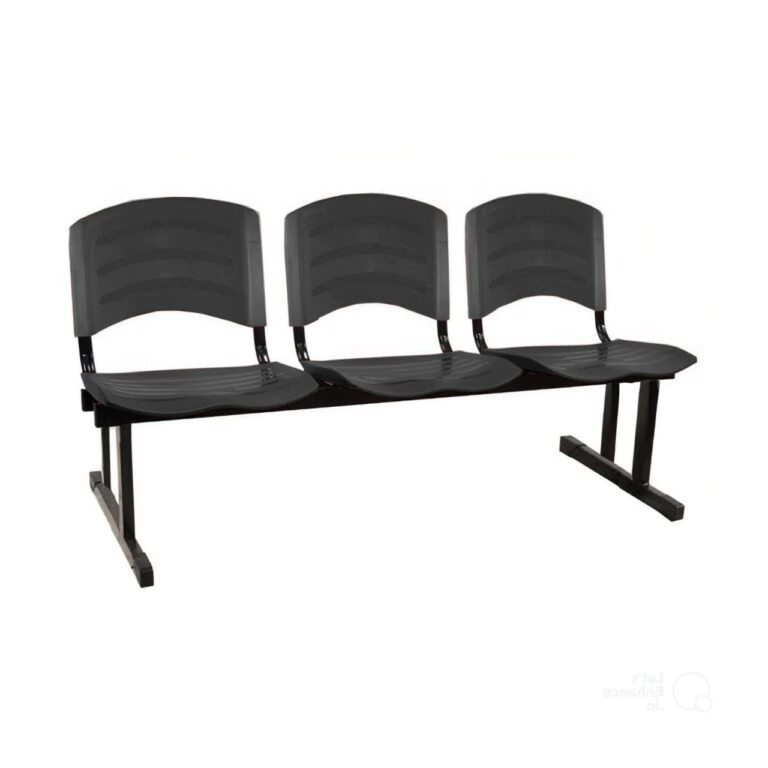 Cadeira Longarina PLÁSTICA 03 Lugares – Cor PRETO – 33021
