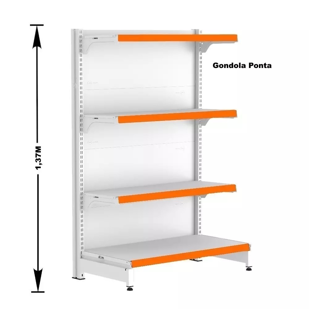 KIT GÔNDOLA CENTRO 137 FIT AMAPÁ 40/30 BRANCO PARA VÃO DE ATÉ 6,70 METROS COM DUAS PONTAS - 56 BANDEJAS PORTA ETIQUETA LARANJA