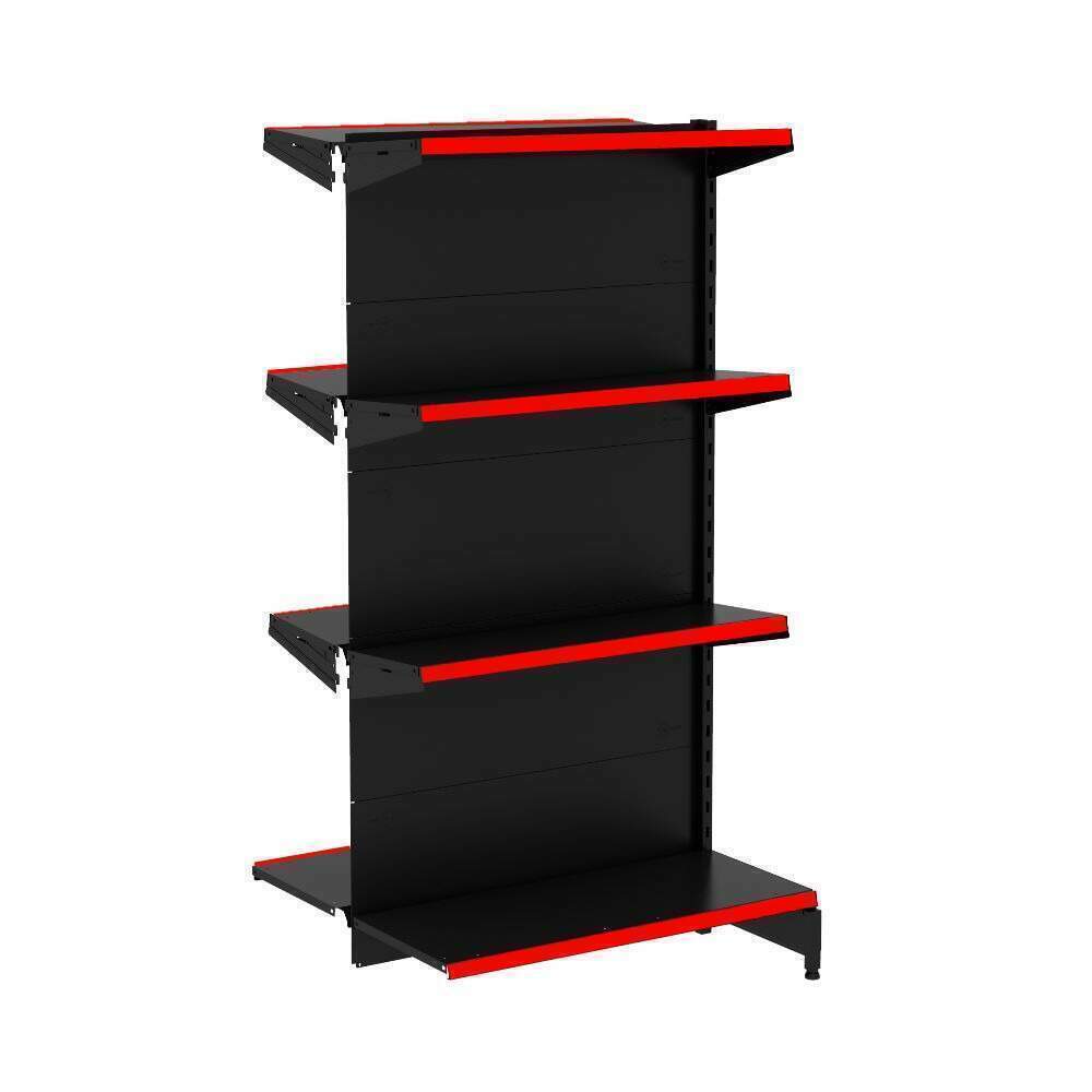 A Gôndola Premium Flex 40 Centro é a solução ideal para farmácias, supermercados, mercearias, lojas de utilidades, materiais de construção e agropecuárias. Com sua altura de 142 cm, ela proporciona uma visão ampla e central do comércio, facilitando a localização dos produtos pelos clientes.