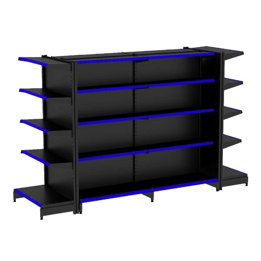 GÔNDOLA CENTRO 170 AMAPÁ FLEX KIT 2 METROS COM 2 PONTA PRETO PORTA ETIQUETA AZUL