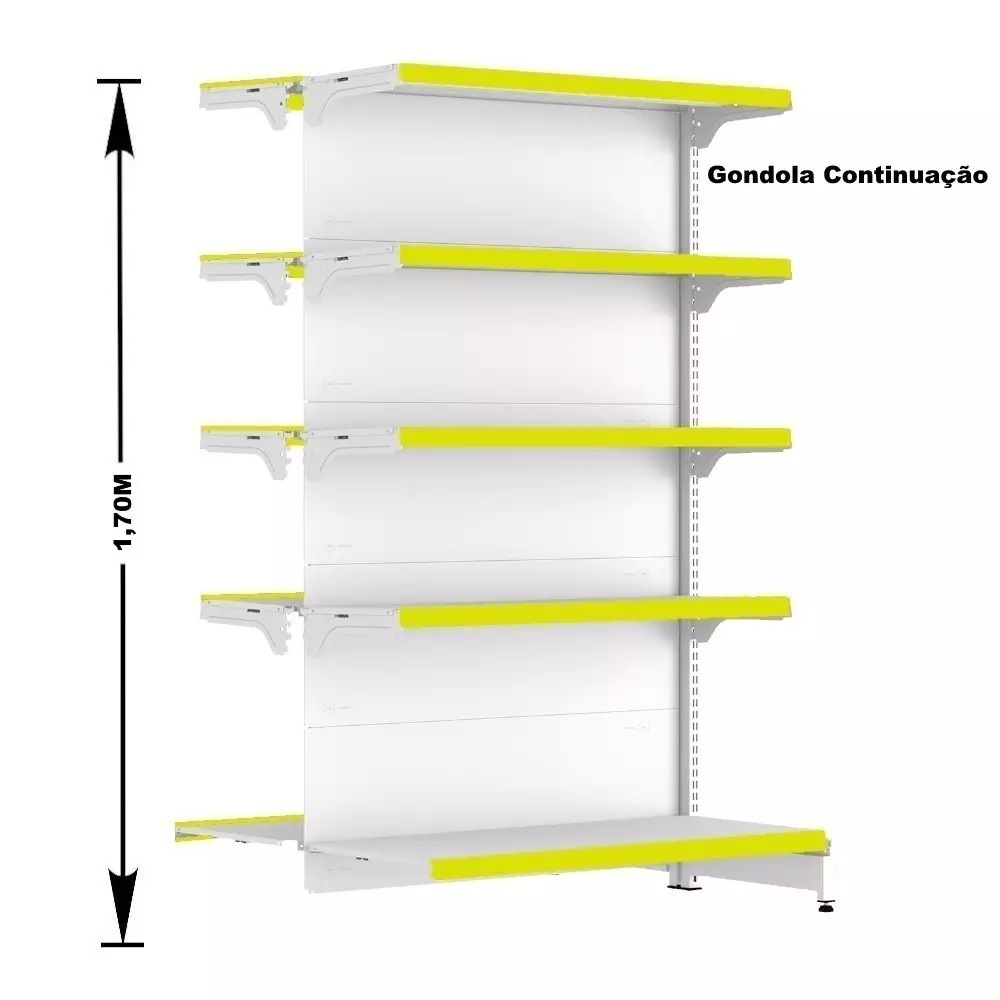 KIT GÔNDOLA CENTRO 170 FIT AMAPÁ 40/30 BRANCO PARA VÃO DE ATÉ 2,40 METROS COM UMA PONTA 25 BANDEJAS PORTA ETIQUETA AMARELO