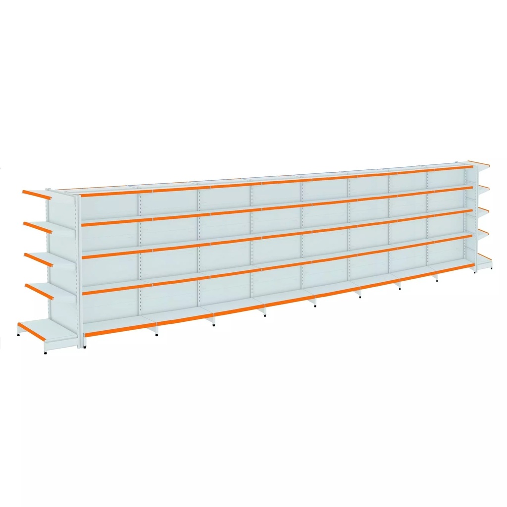 KIT GÔNDOLA CENTRO 170 FIT AMAPÁ 40/30 BRANCO PARA VÃO DE ATÉ 8,5 METROS COM DUAS PONTAS - 90 BANDEJAS COM PORTA ETIQUETA LARANJA