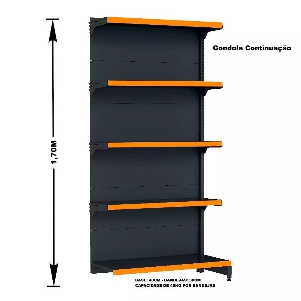 GÔNDOLA PAREDE 170 FIT AMAPÁ PARA VÃO DE ATÉ 4 METROS 40/30 BRANCO COM 20 BANDEJAS E PORTA ETIQUETA LARANJA