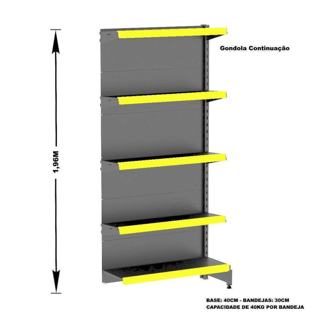 GÔNDOLA PAREDE 196 AMAPÁ FLEX KIT 5 METROS COM 1 CANTO 40/30 PRETO PORTA ETIQUETA AMARELO