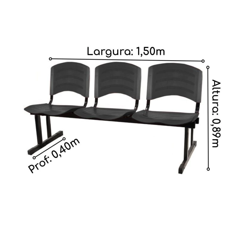 Kit 05 Cadeiras Longarinas PLÁSTICA 03 Lugares – Cor PRETO – REALPLAST – 33034