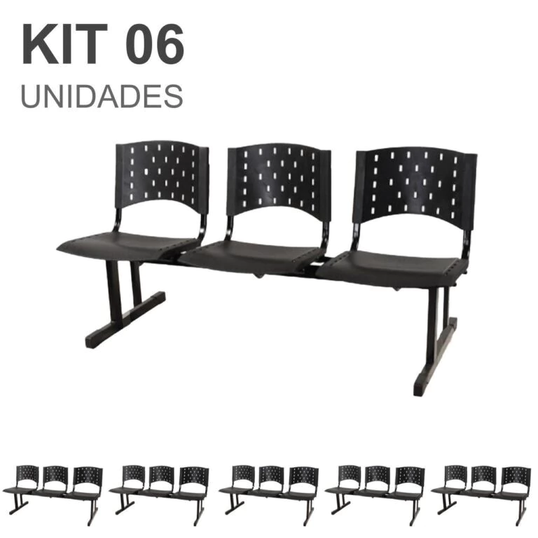 Kit 06 longarinas PLÁSTICAS 03 Lugares – Cor PRETO – REALPLAST – 23004