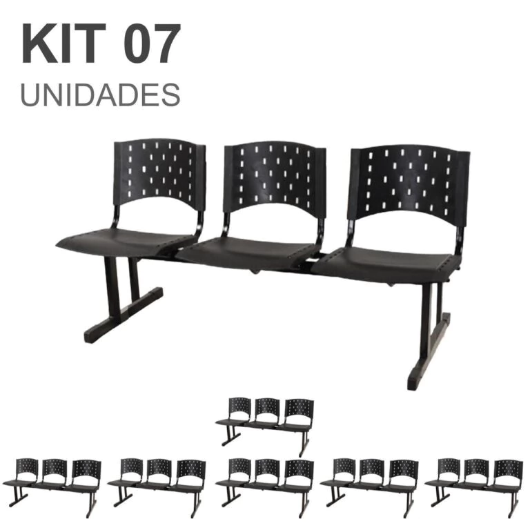 Kit 07 longarinas PLÁSTICAS 03 Lugares – Cor PRETO – REALPLAST – 23005